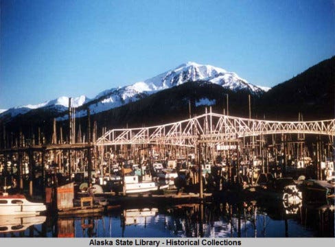 My father took a job with the Coast Guard when I was almost five, and he, my mother, and I moved to Juneau that fall after school had already started. My mother, who hadn’t thought he’d really get the job when he applied for it, hung up on him in our home in Denver when he called to tell her the news. After marrying in Kansas City, she had followed him around the country to a succession of government work, all in fascinating or beautiful places. But still, a move to Alaska was not what she had had in mind. I didn’t have an opinion, and I left my new kindergarten teacher behind me; we drove to Canada and departed for Juneau by ferry from Prince Rupert.